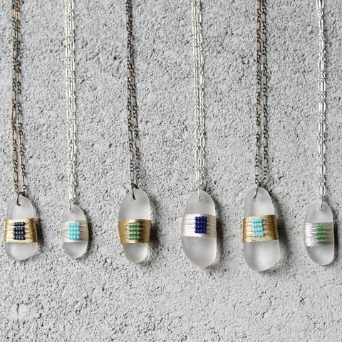 Because we are using genuine sea glass, each piece is slightly different from the ones in the photo. No two necklaces are the same and have a lovely character all their own.