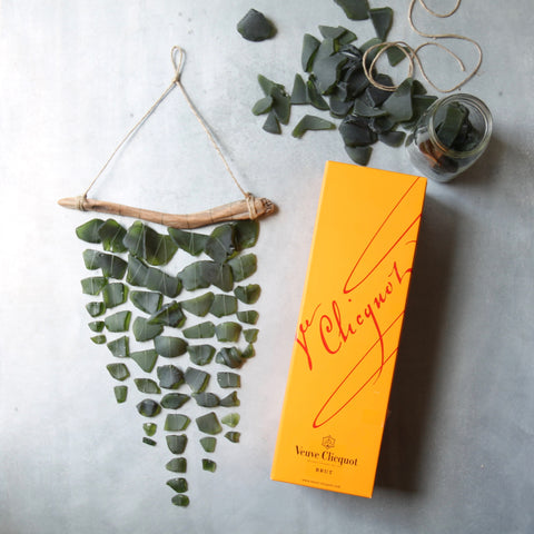 This is a sea glass mobile / sun catcher / wall hanging made with sea glass, tumbled glass, and hung on a driftwood banner. It is expertly handcrafted in Massachusetts. Each mobile is a one of a kind item. Every piece of tumbled glass is hand-tied with fishing line.