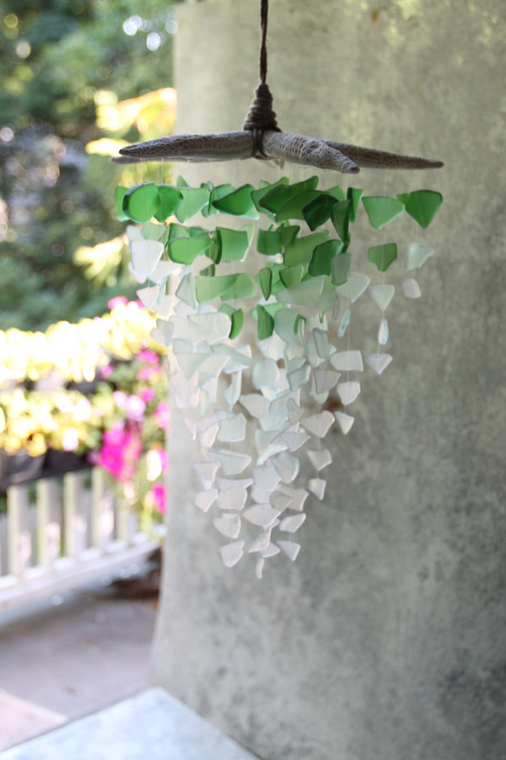 Sea Glass & Starfish Mobile - Ombre Green Chandelier